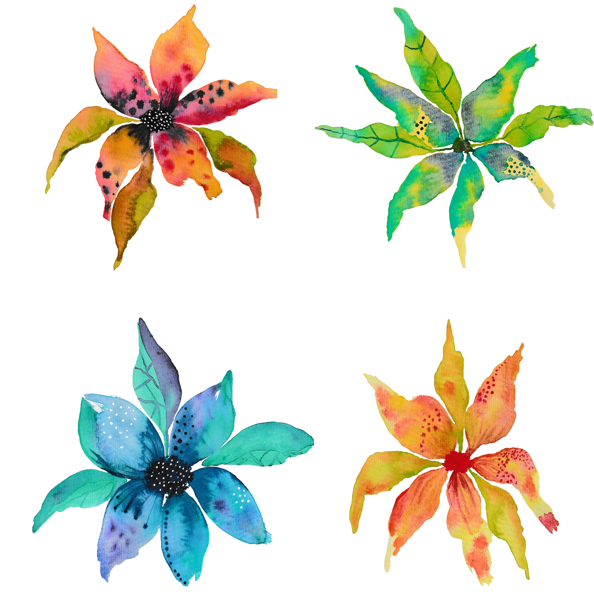 A hand-painted set of 4 lively watercolour florals for printing and displaying or using in your own art. Cut them out and use them in your junk journal or collage projects! Prints in 300 DPI on letter sized paper and includes large and small sizes of all images. If you use these in your work I'd love to see! Tag me @artofmichellemarie on Instagram.